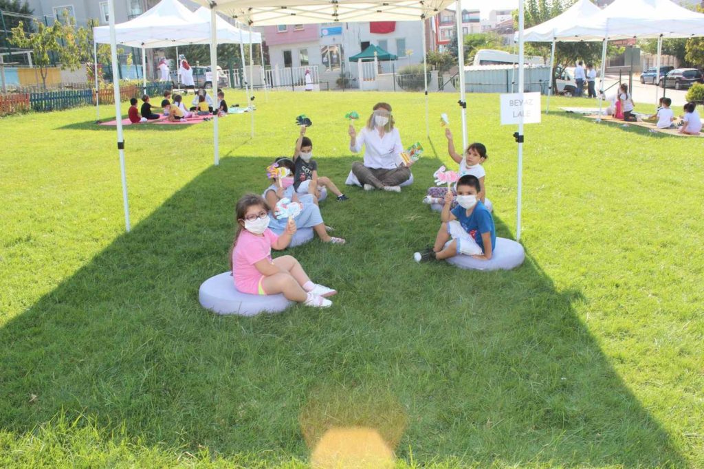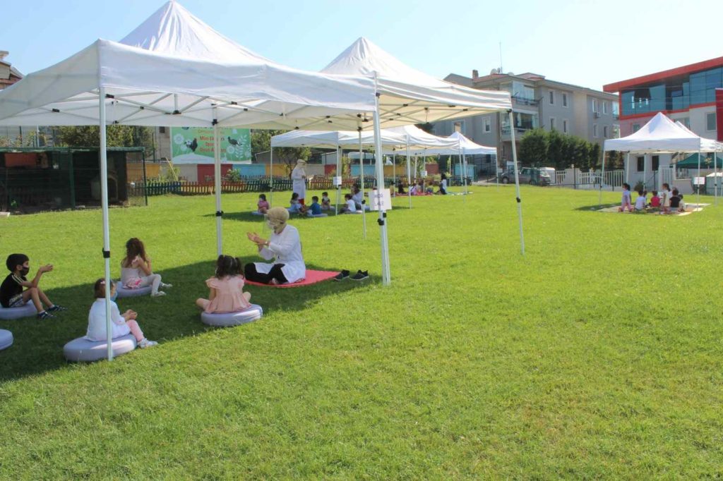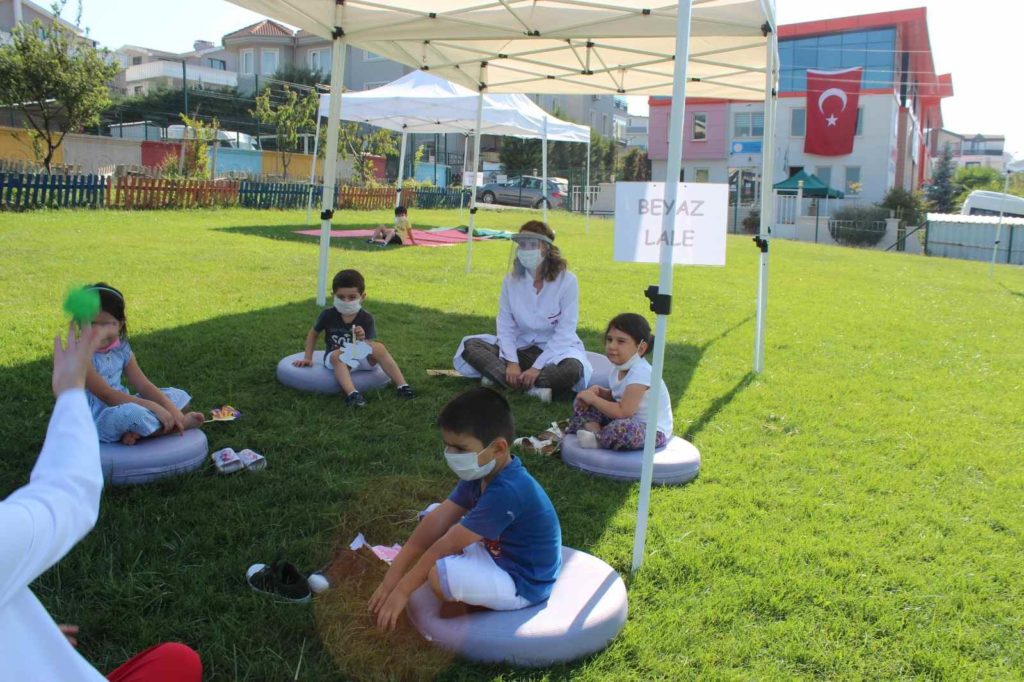 Okul öncesi öğrencilerimiz yüz yüze eğitime başlamanın heyacanını yaşıyorlar. 31 Ağustos’ta yüz yüze eğitime başlayan okul öncesi öğencilerimiz eko bahçe açık havada ders yapmanın, kitap dinlemenin ve oyun oynamanın tadını çıkardılar. Öğrencilerimiz her gün zamanlarının bir kısmını eko bahçede her sınıf için ayrı oluşturulan açık hava dersliklerinde geçirmektedirler. Her şey öğrencilerimizin sağlığı ve mutluluğu için.