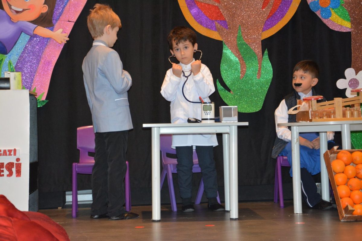 Gerek sınıf öğretmenleri, gerekse branş öğretmenleriyle provalarda gösterdikleri gayretin, kaç kat fazlasını rollerine göre giydikleri kıyafetleriyle sahnede de göstererek muhteşem bir gösteri sundular.