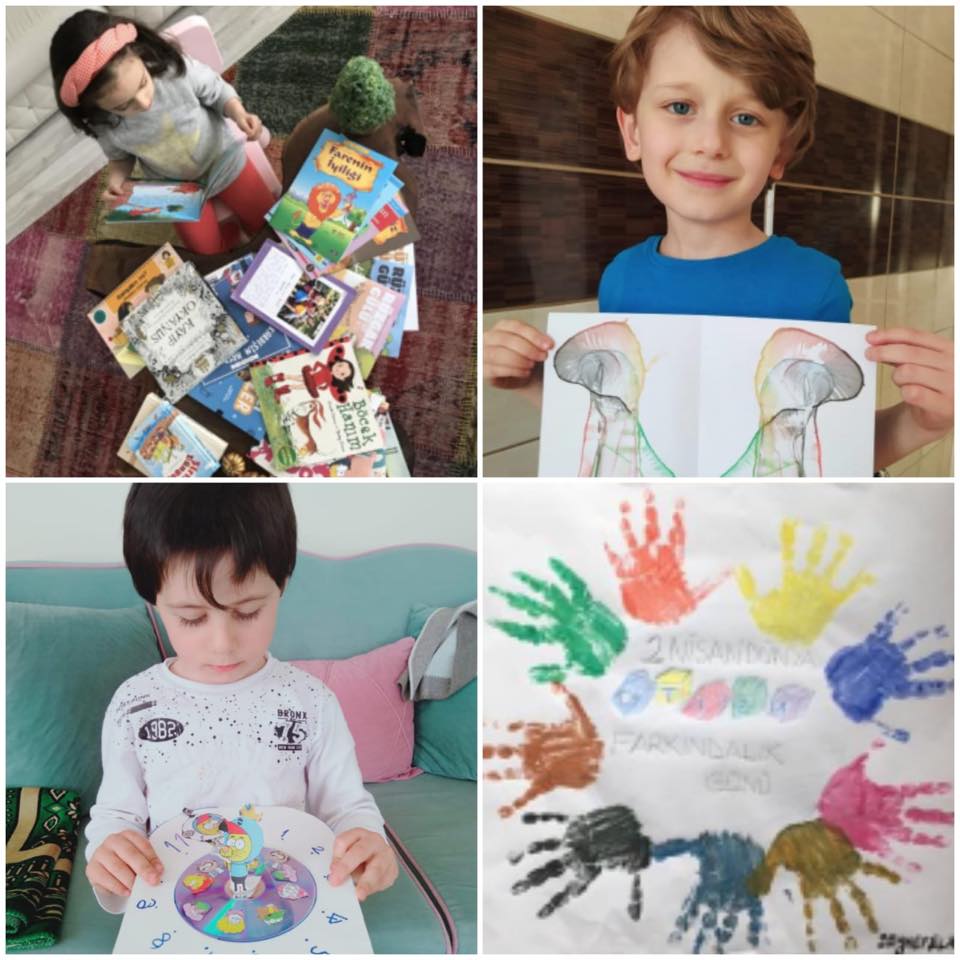 Akademik derslerin yanında öğrencilerimiz, öğretmenlerimizin ve velilerinin desteği ile evde tişört tasarlama, mutfak etkinliği, Kütüphaneler Haftası’nda evde kütüphane oluşturma, Adaletli Altın Makas hikâyesinden sonra altın makas ödülü yapma, otizm farkındalık etkinliği, dikkat oyunu, matematik çalışması, ip baskısı, güneş saati çalışması, yumurta boyama vb. birçok etkinliği başarı ile gerçekleştiriyor.