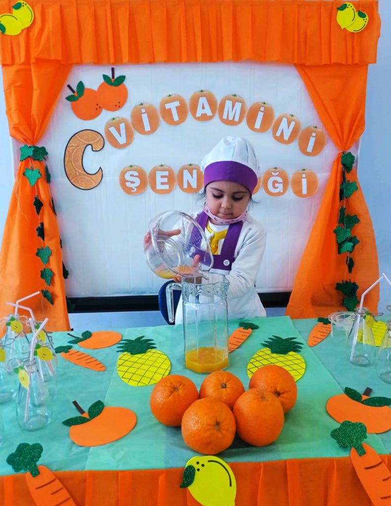 Öğrencilerimizin sağlıklı beslenmeleri ve faydalı alışkanlıklar kazanmaları için C vitaminini nasıl kazanacağını öğreten etkinlikler yapıldı. Etkinliğimiz sayesinde Ana sınıfı öğrencilerimiz bu meyvelerin özelliklerini, tanıdı ve insan vücuduna olan faydalarını öğrenerek bilinçlendiler. Hazırlamış oldukları sağlıklı meyve sularının tadına bakarak keyifle zaman geçirdiler…
